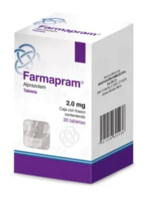 Farmapram 2mg Alprazolam. Tabletas. trata ansiedad y ataques de pánico mediante potenciación de GABA, inicio de acción rápido (1-2 horas) y vida media adecuado para control agudo.